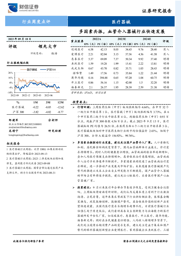 【财信证券】【20230918】医疗器械行业周度点评:多因素共振,血管介入器械行业快速发展-13页