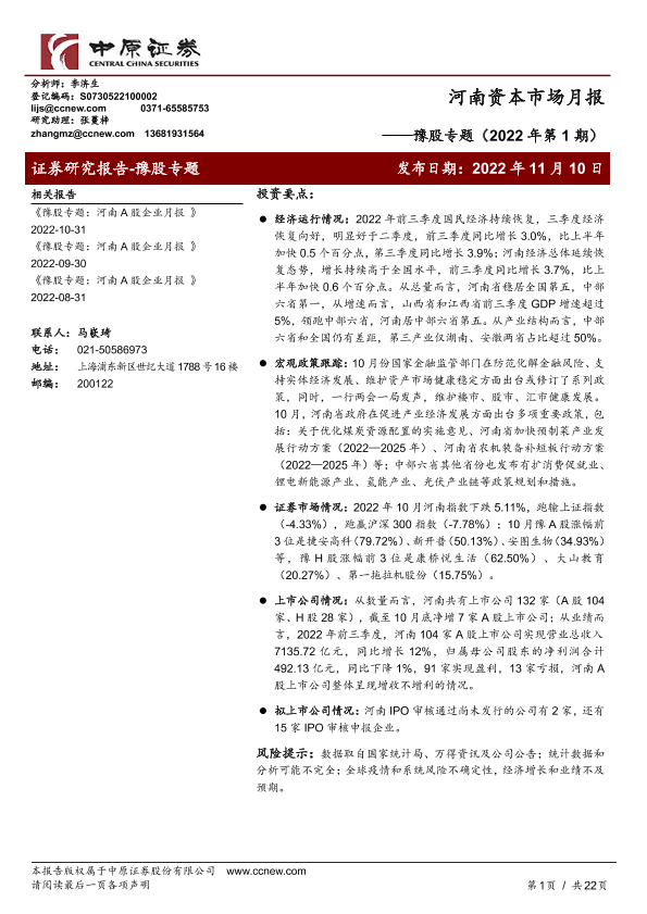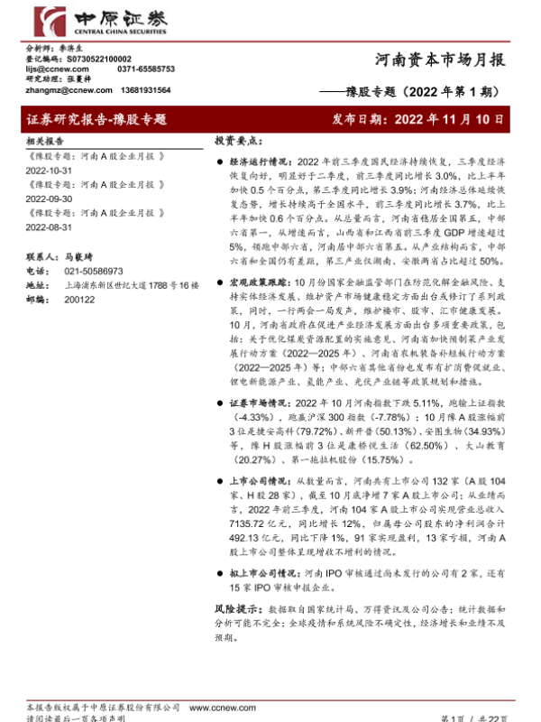 【中原证券】【20221110】河南资本市场月报:豫股专题(2022年第1期)-22页