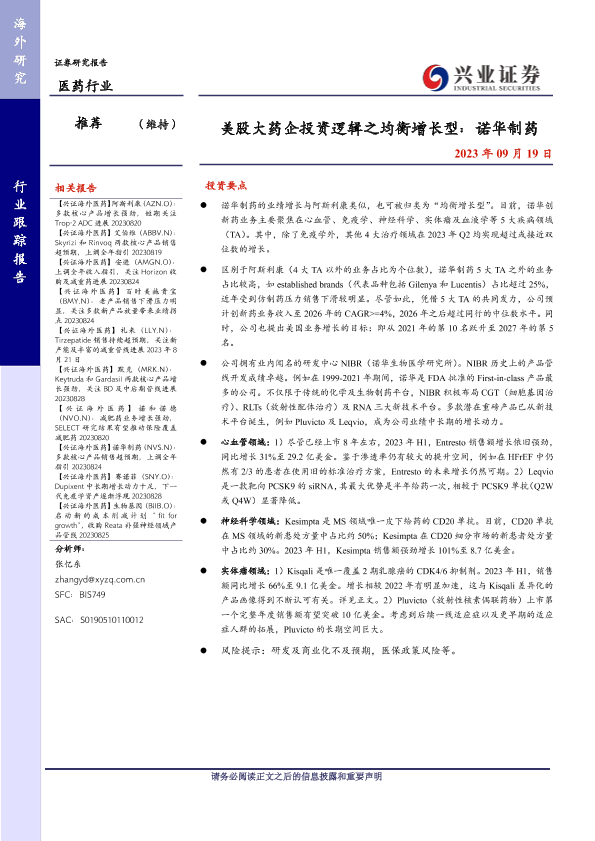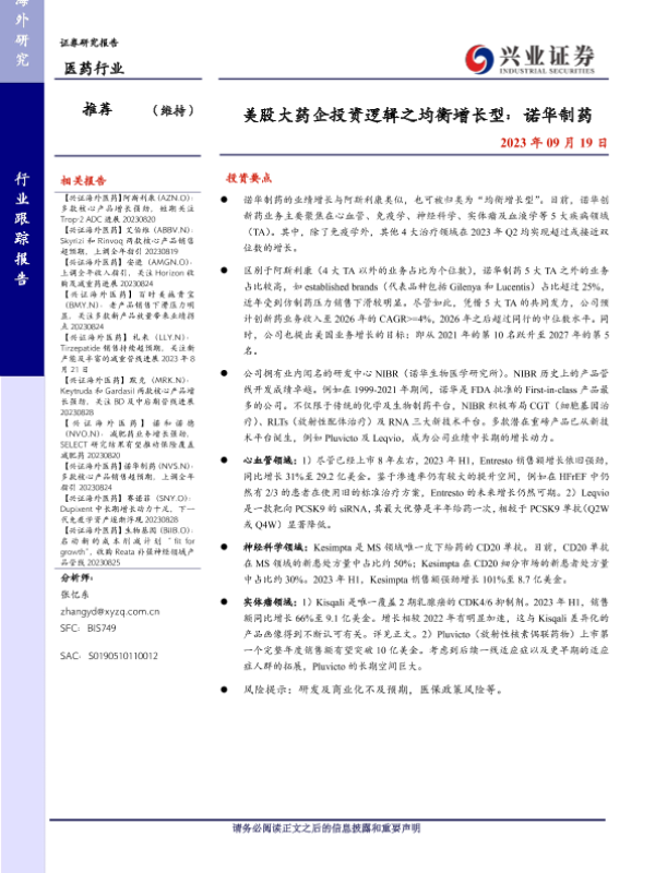 【兴业证券】【20230919】美股大药企投资逻辑之均衡增长型:诺华制药-12页
