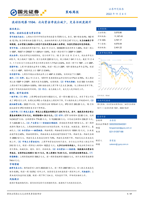 【国元证券】【20221104】流动性观察:北向资金净流出减少,交易活跃度提升-17页