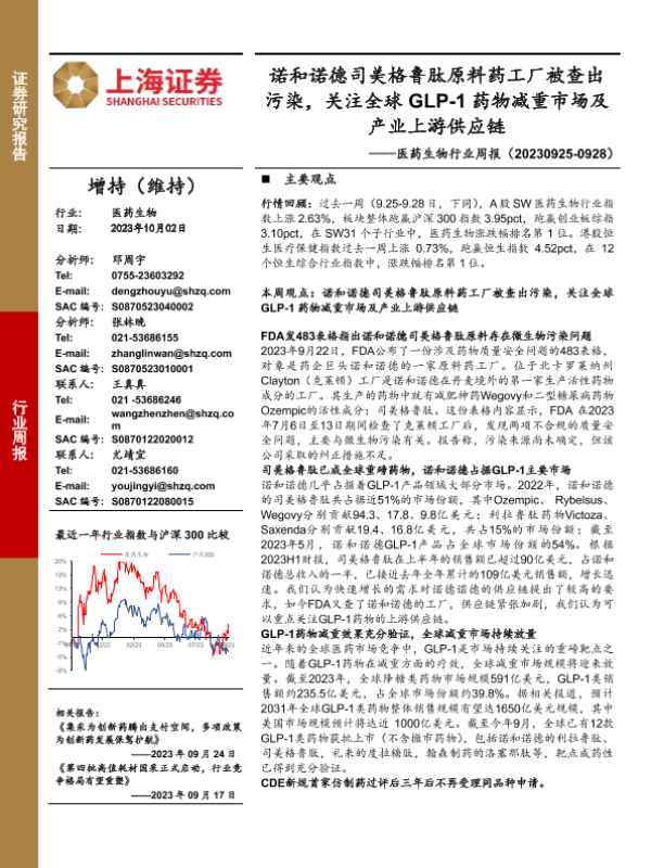 【上海证券】【20231002】医药生物行业周报:诺和诺德司美格鲁肽原料药工厂被查出污染,关注全球GLP-1药物减重市场及产业上游供应链-10页