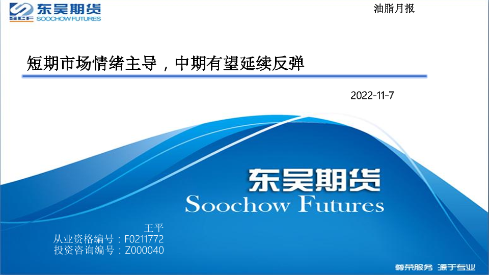 【东吴期货】【20221107】油脂月报:短期市场情绪主导,中期有望延续反弹-22页