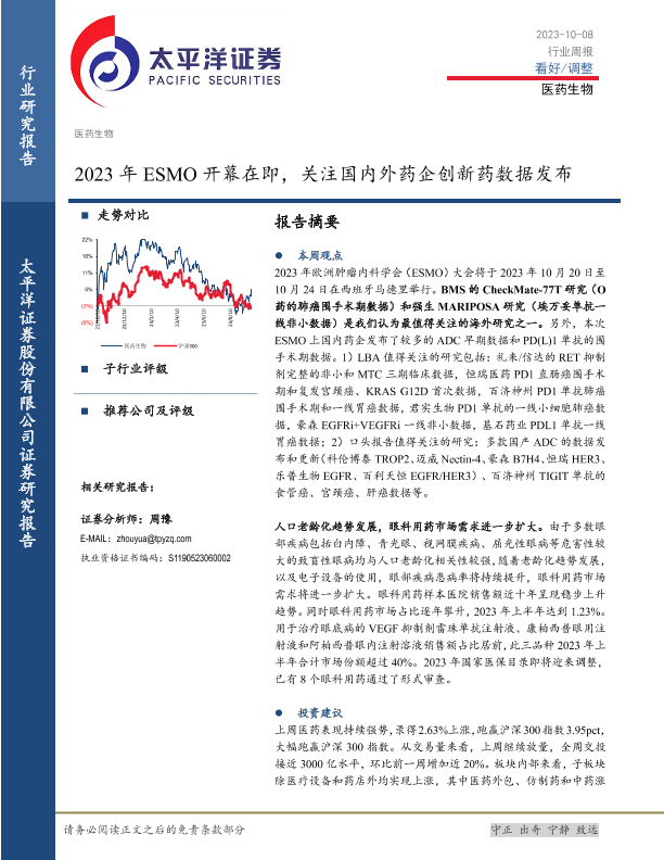 【太平洋证券】【20231008】2023年ESMO开幕在即,关注国内外药企创新药数据发布-25页