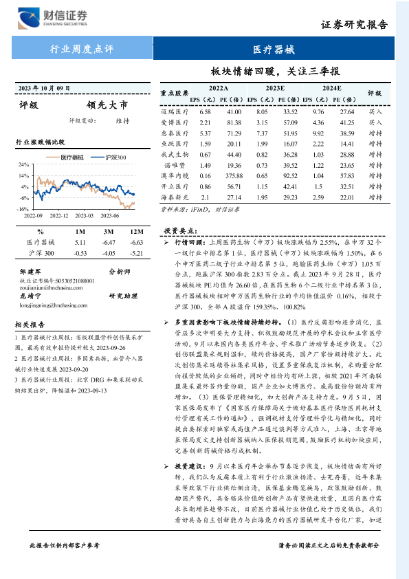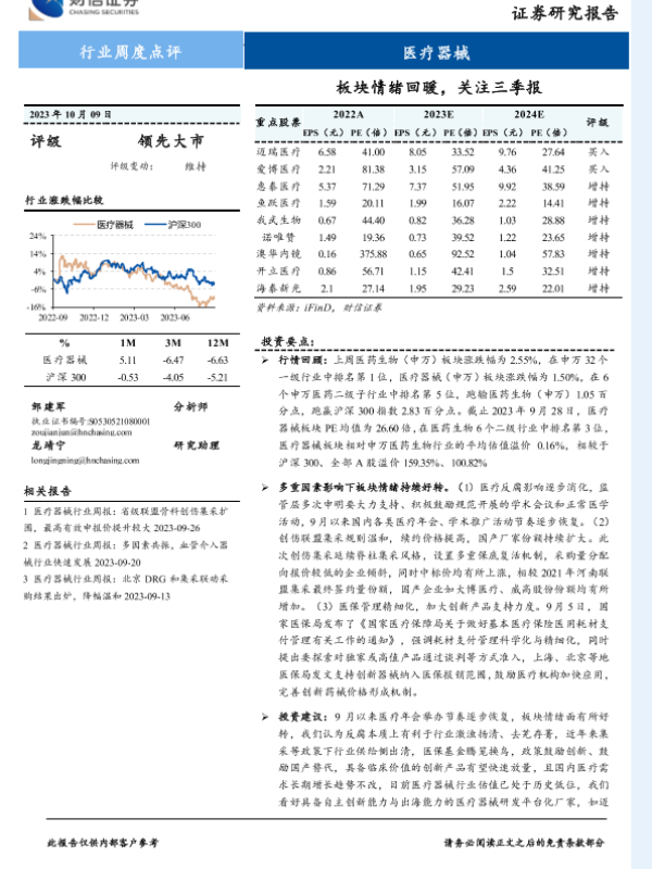 【财信证券】【20231009】医疗器械行业周度点评:板块情绪回暖,关注三季报-10页
