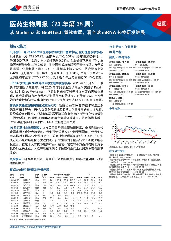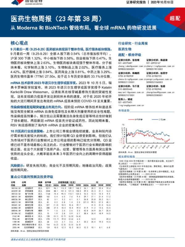 【国信证券】【20231010】从Moderna和BioNTech管线布局看全球mRNA药物研发进展-21页