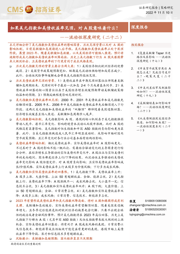【海通证券】【20221110】流动性深度研究(二十二):如果美元指数和美债收益率见顶,对A股意味着什么?-25页