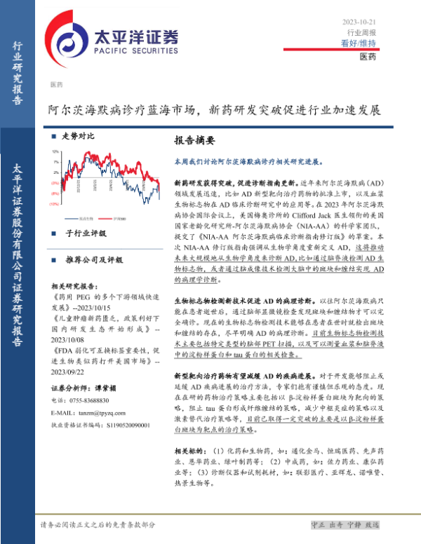 【太平洋证券】【20231021】阿尔茨海默病诊疗蓝海市场,新药研发突破促进行业加速发展-19页
