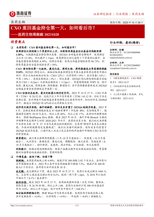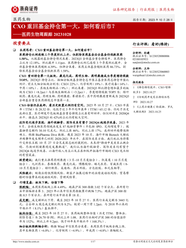 【浙商证券】【20231028】CXO重回基金持仓第一大,如何看后市?-17页