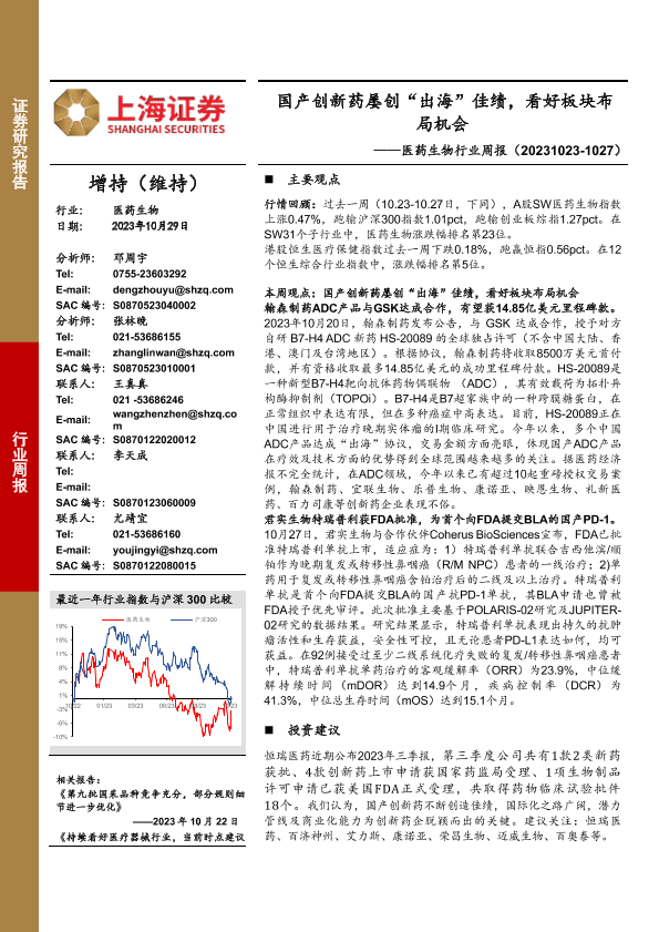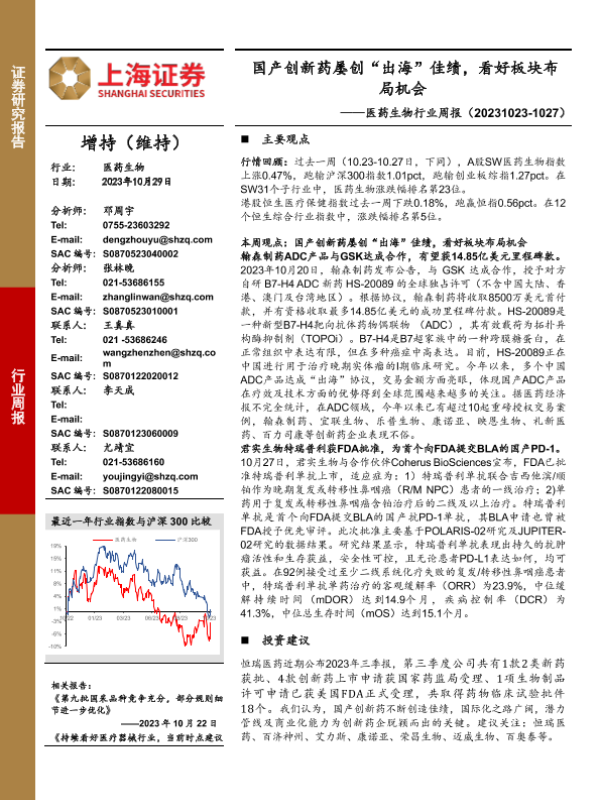 【上海证券】【20231029】国产创新药屡创“出海”佳绩,看好板块布局机会-10页