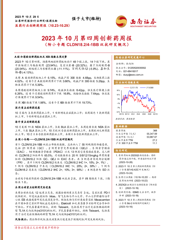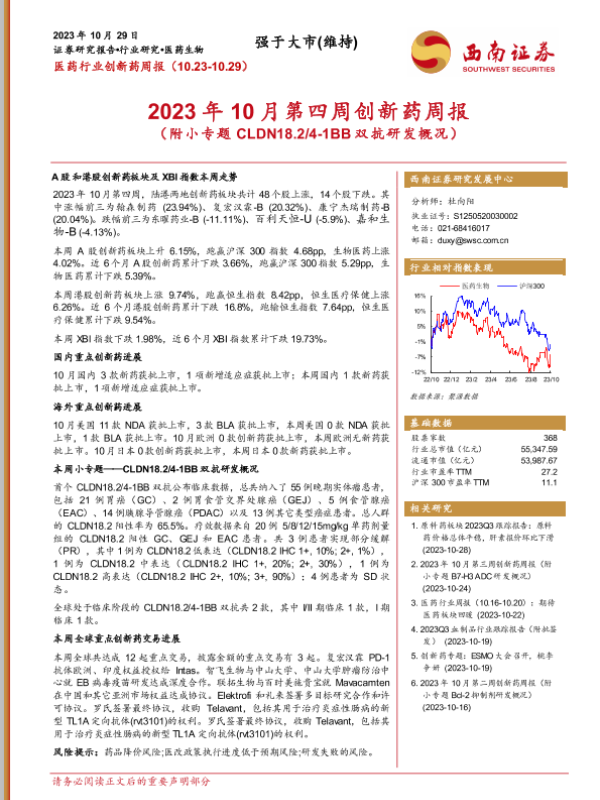 【西南证券】【20231029】2023年10月第四周创新药周报-18页