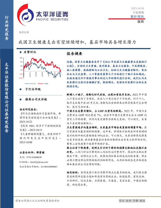 【太平洋证券】【20231030】我国卫生健康支出有望继续增加,基层市场具备增长潜力-21页