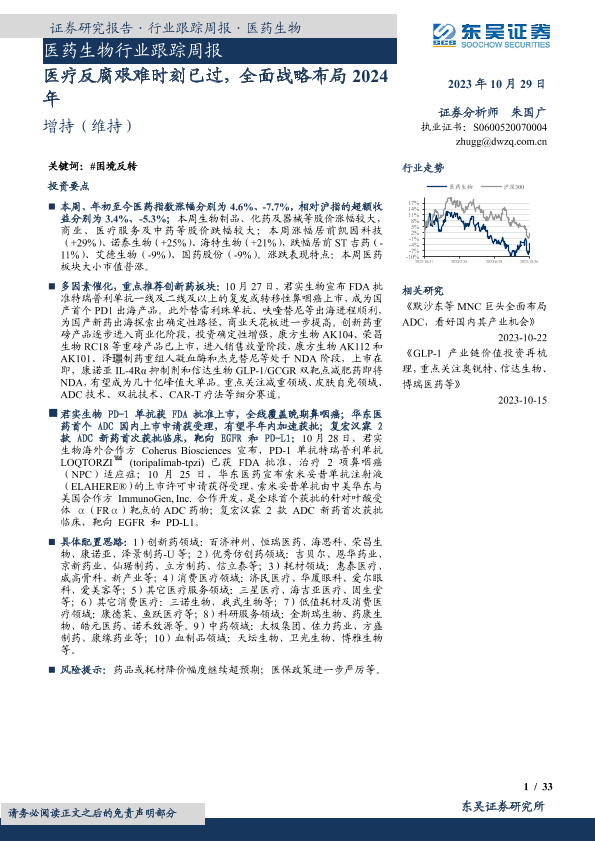 【东吴证券】【20231029】医药生物行业跟踪周报:医疗反腐艰难时刻已过,全面战略布局2024年-33页