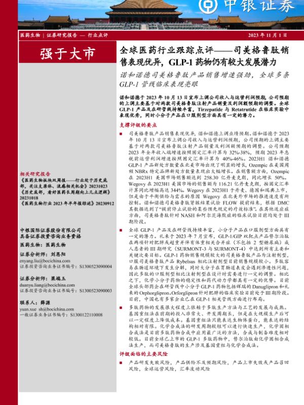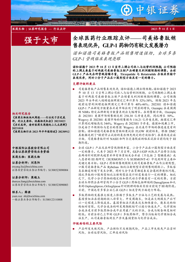 【中银证券】【20231101】全球医药行业跟踪点评:司美格鲁肽销售表现优异,GLP-1药物仍有较大发展潜力-10页