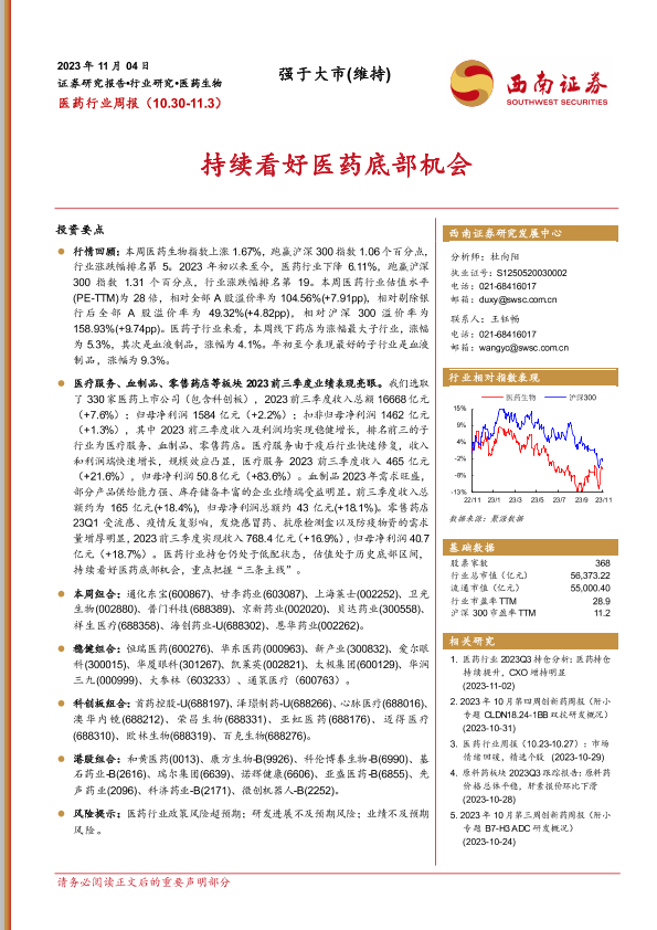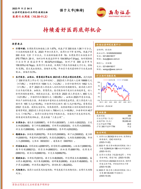 【西南证券】【20231104】医药行业周报:持续看好医药底部机会-35页