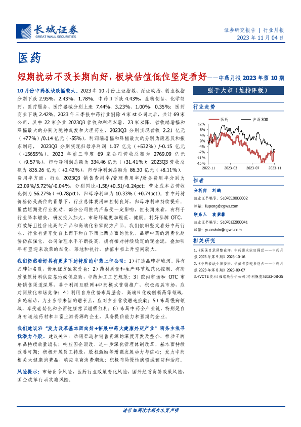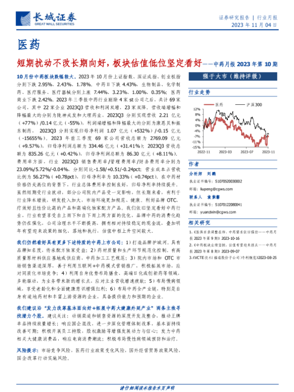 【长城证券】【20231104】短期扰动不改长期向好,板块估值低位坚定看好-14页