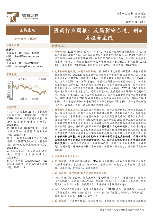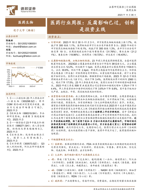 【德邦证券】【20231105】医药行业周报:反腐影响已过,创新是投资主线-17页