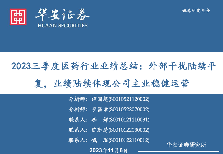 【华安证券】【20231106】2023三季度医药行业业绩总结-25页