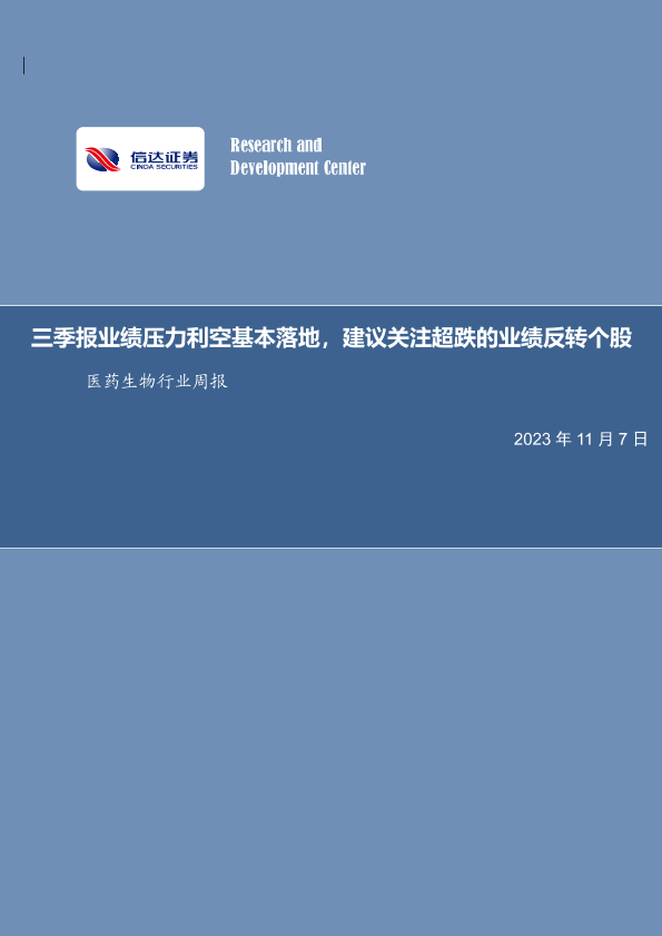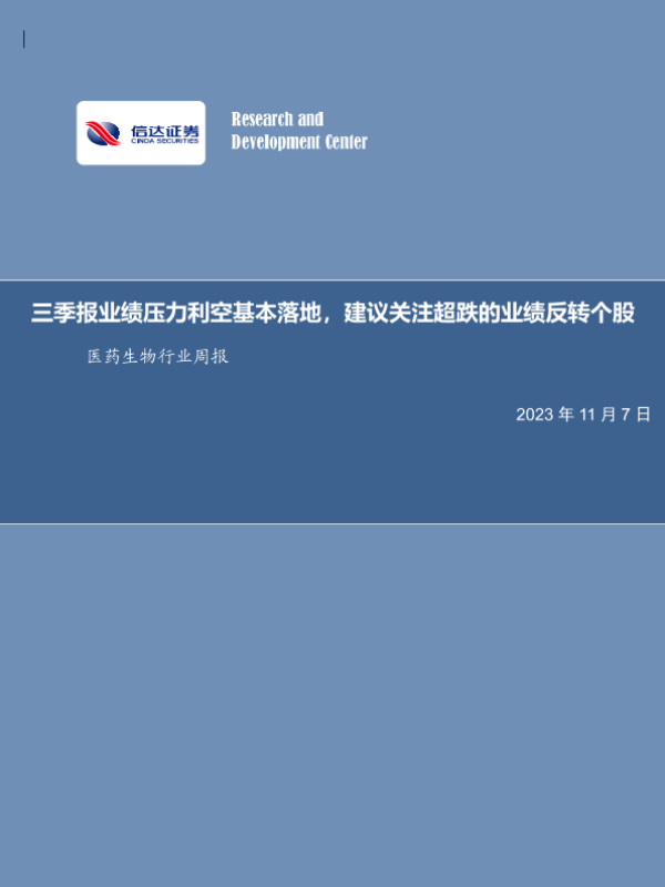 三季报 业绩反转 医药生物 行业周报 超跌个股