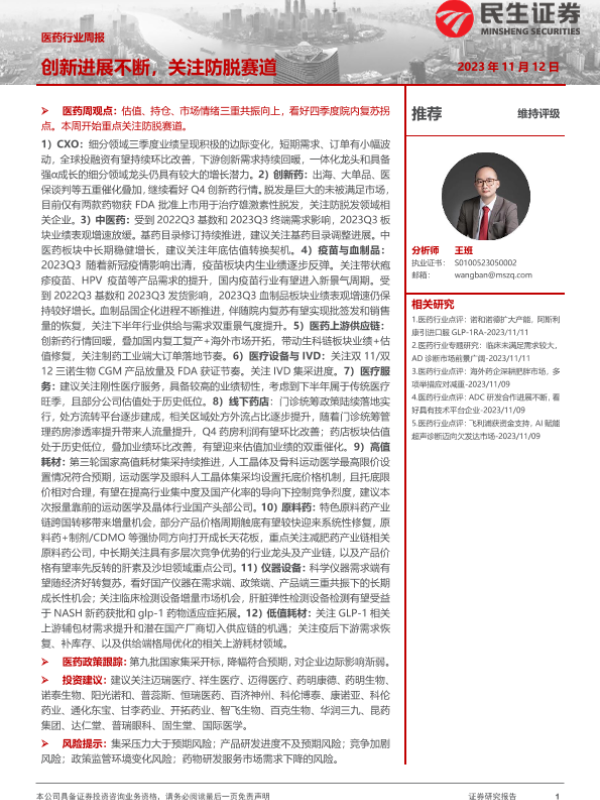 【民生证券】【20231112】医药行业周报:创新进展不断,关注防脱赛道-29页