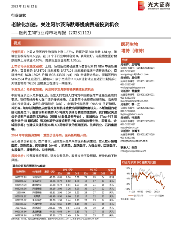 【光大证券】【20231112】医药生物行业跨市场周报:老龄化加速,关注阿尔茨海默等慢病赛道投资机会-25页
