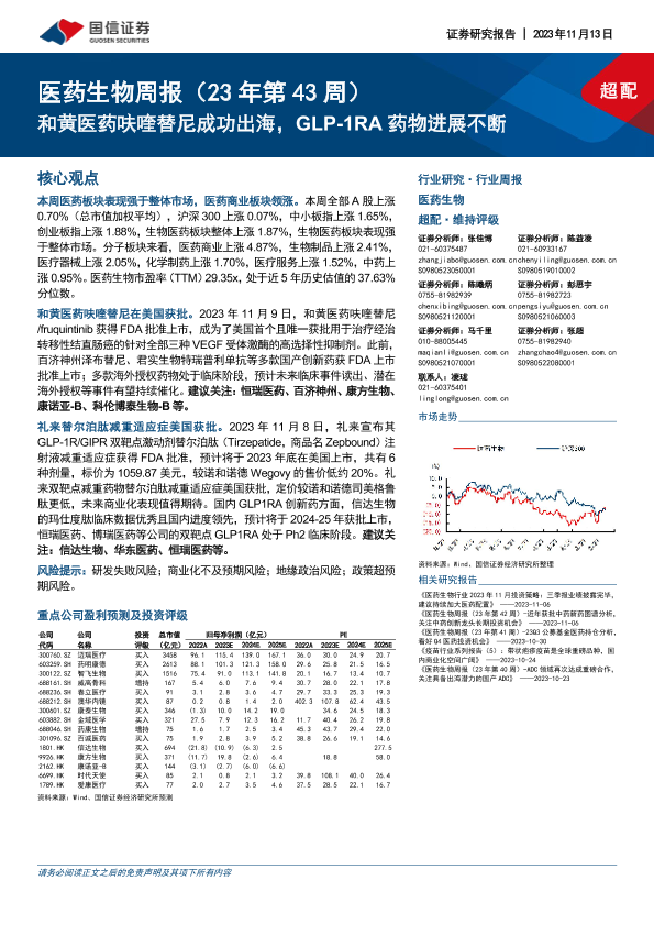 【国信证券】【20231113】医药生物周报:和黄医药呋喹替尼成功出海,GLP-1RA药物进展不断-19页