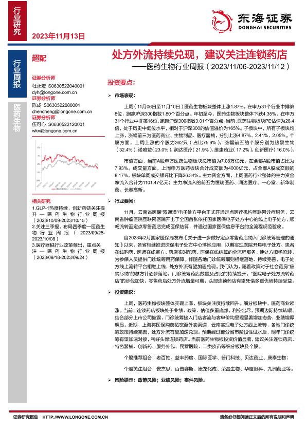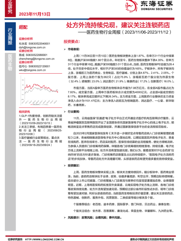 【东海证券】【20231113】医药生物行业周报:处方外流持续兑现,建议关注连锁药店-14页