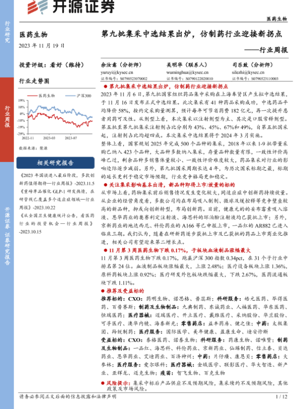 【开源证券】【20231119】第九批集采中选结果出炉,仿制药行业迎接新拐点-12页