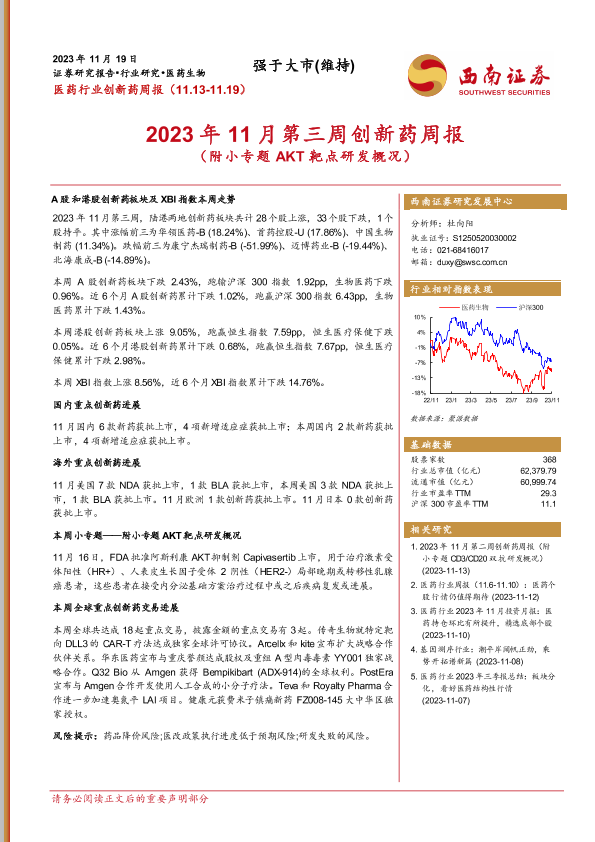 【西南证券】【20231119】2023年11月第三周创新药周报-22页