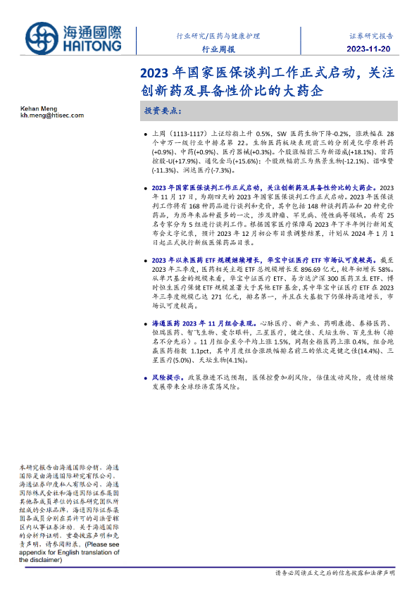【海通国际】【20231120】2023年国家医保谈判工作正式启动,关注创新药及具备性价比的大药企-12页