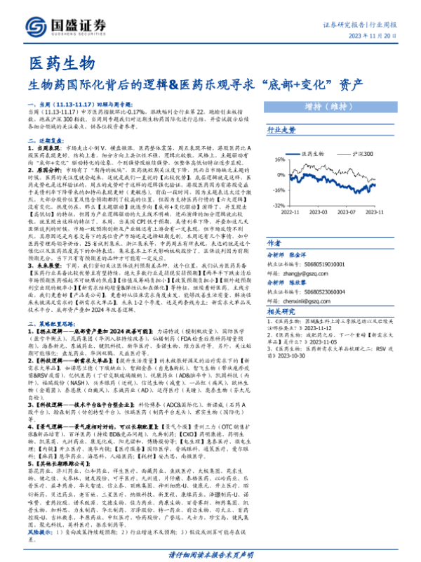【国盛证券】【20231120】医药生物行业周报:生物药国际化背后的逻辑&医药乐观寻求“底部+变化”资产-40页