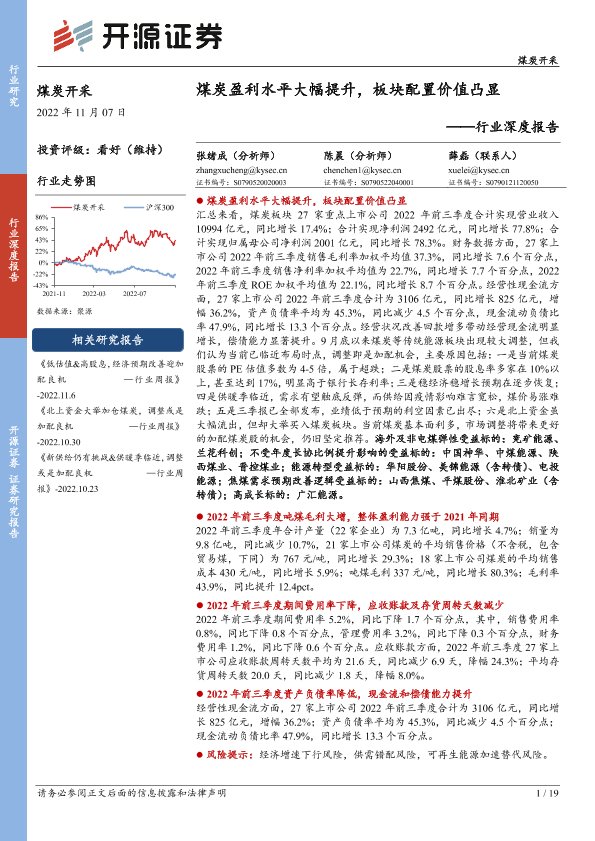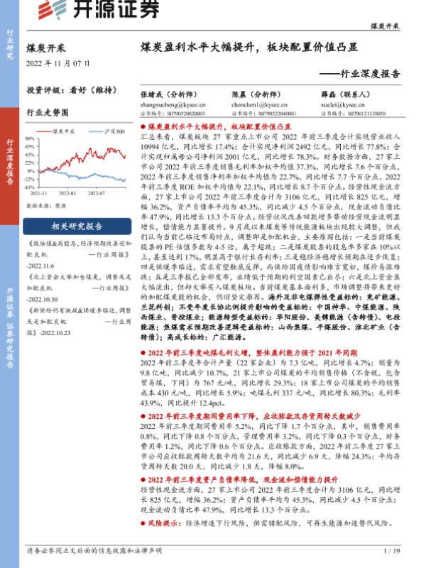 【开源证券】【20221107】煤炭开采行业深度报告:煤炭盈利水平大幅提升,板块配置价值凸显-19页