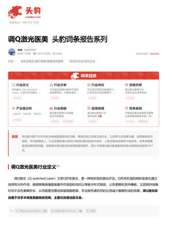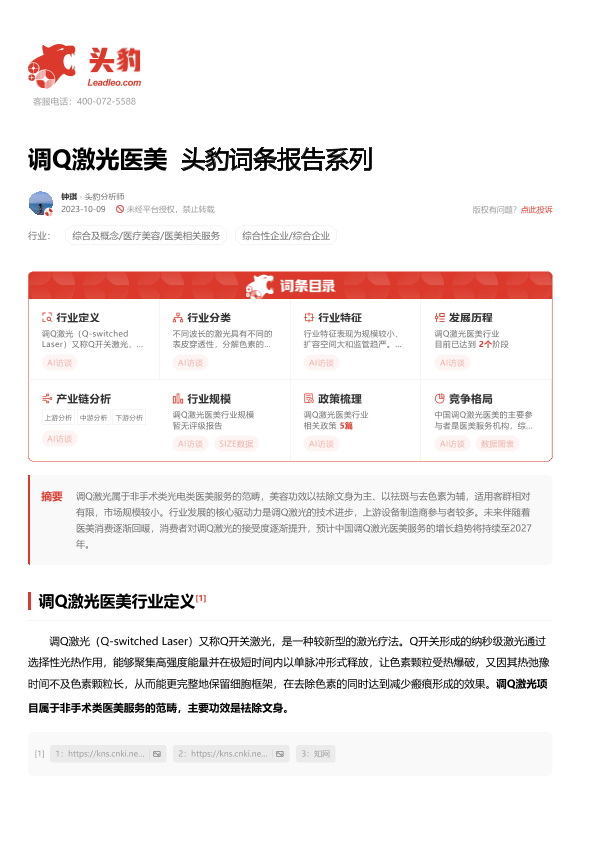 【头豹研究院】【20231009】调Q激光医美 头豹词条报告系列-13页