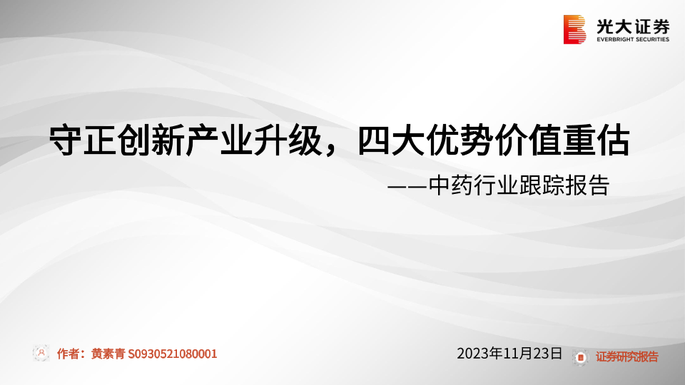 【光大证券】【20231123】中药行业跟踪报告:守正创新产业升级,四大优势价值重估-37页