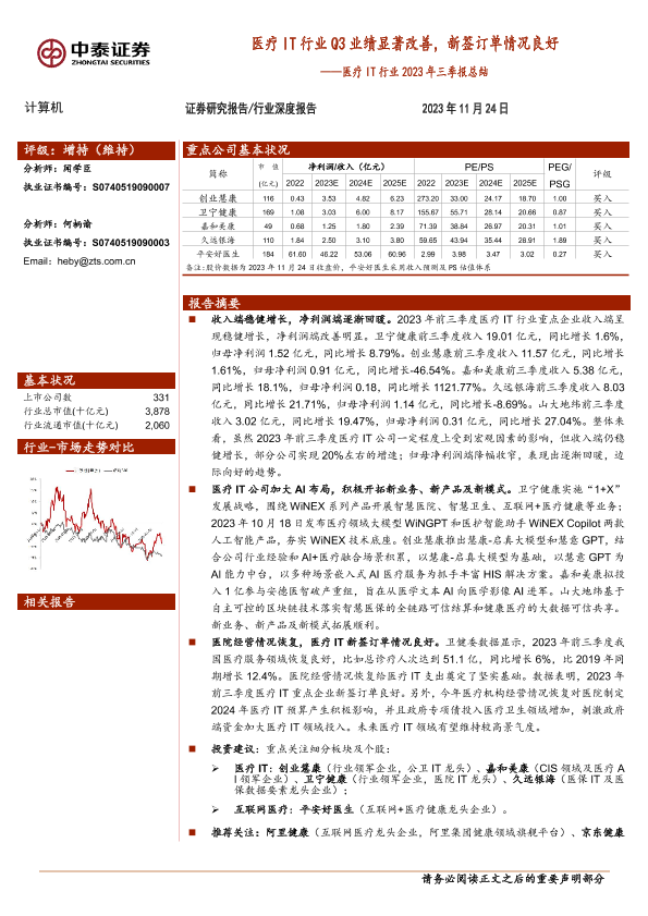 【中泰证券】【20231124】医疗IT行业2023年三季报总结-18页