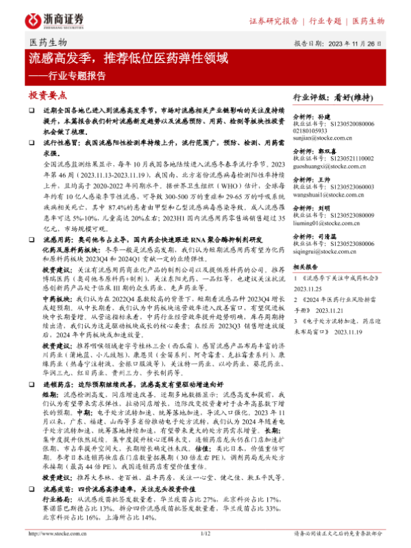 【浙商证券】【20231126】流感高发季,推荐低位医药弹性领域-12页