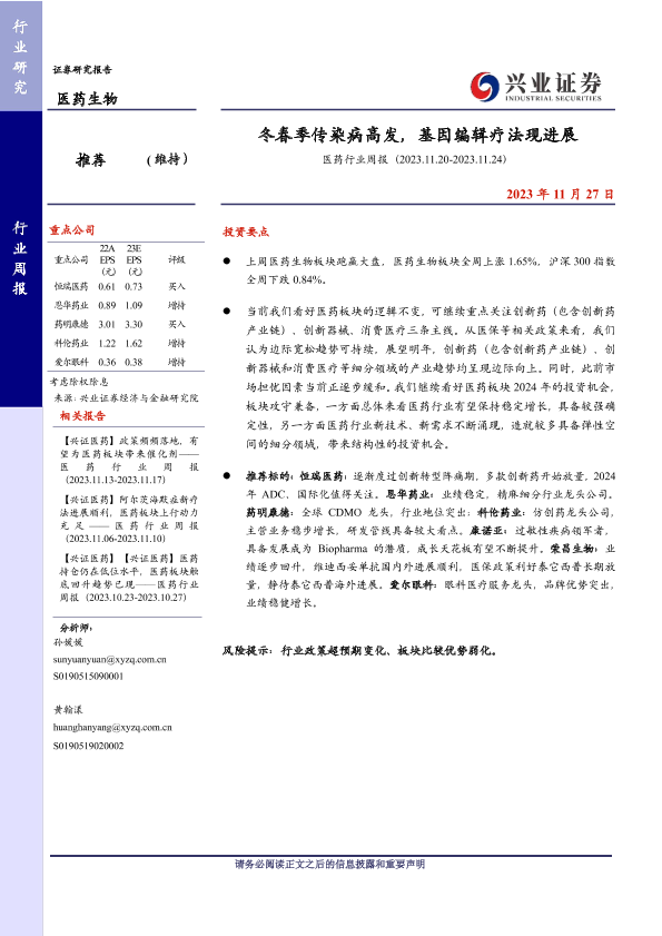 【兴业证券】【20231127】冬春季传染病高发,基因编辑疗法现进展-18页