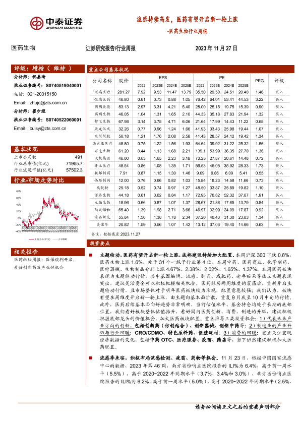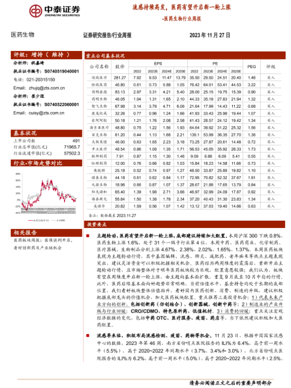 【中泰证券】【20231127】医药生物行业周报:流感持续高发,医药有望开启新一轮上涨-11页