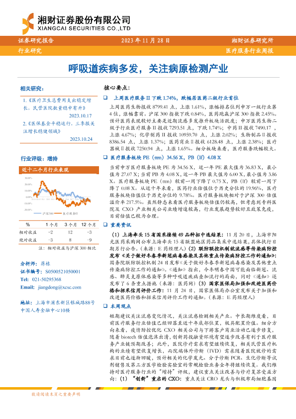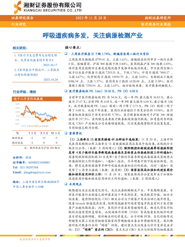 【湘财证券】【20231128】医疗服务行业周报:呼吸道疾病多发,关注病原检测产业-14页