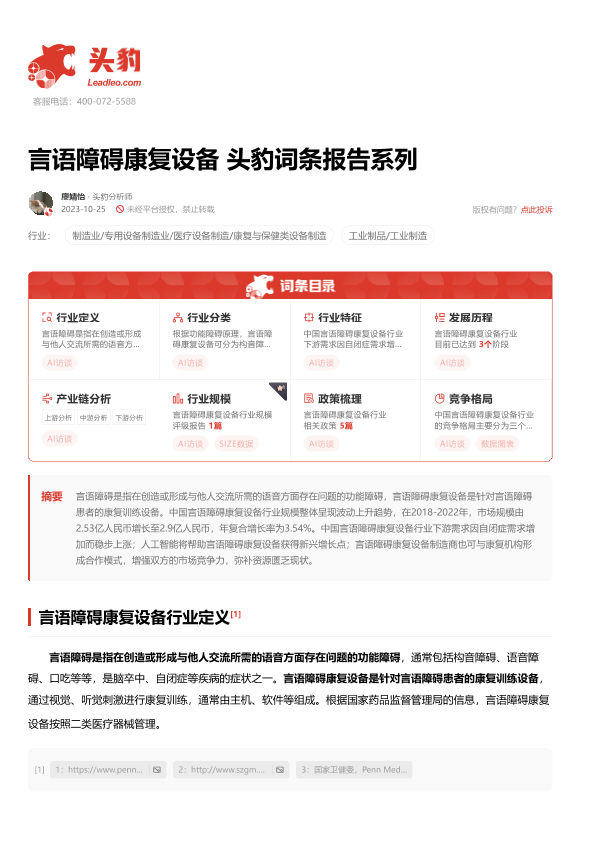 【头豹研究院】【20231025】言语障碍康复设备 头豹词条报告系列-14页