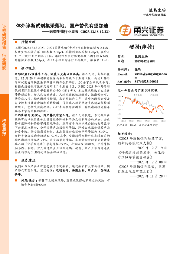 【甬兴证券】【20231228】体外诊断试剂集采落地,国产替代有望加速-10页