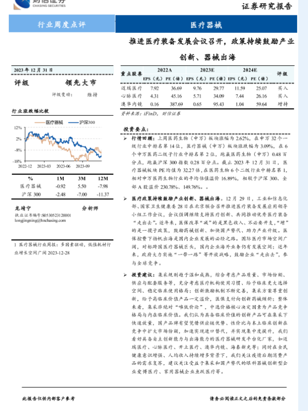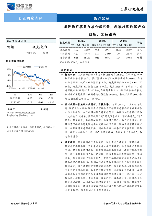 【财信证券】【20231231】推进医疗装备发展会议召开,政策持续鼓励产业创新、器械出海-11页