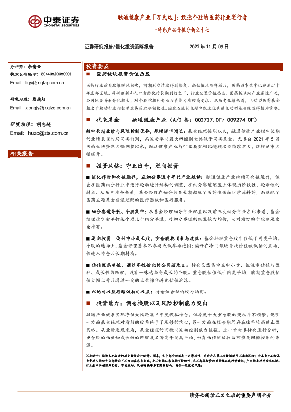 【中泰证券】【20221109】特色产品价值分析之十七:融通健康产业「万民远」,甄选个股的医药行业逆行者-16页