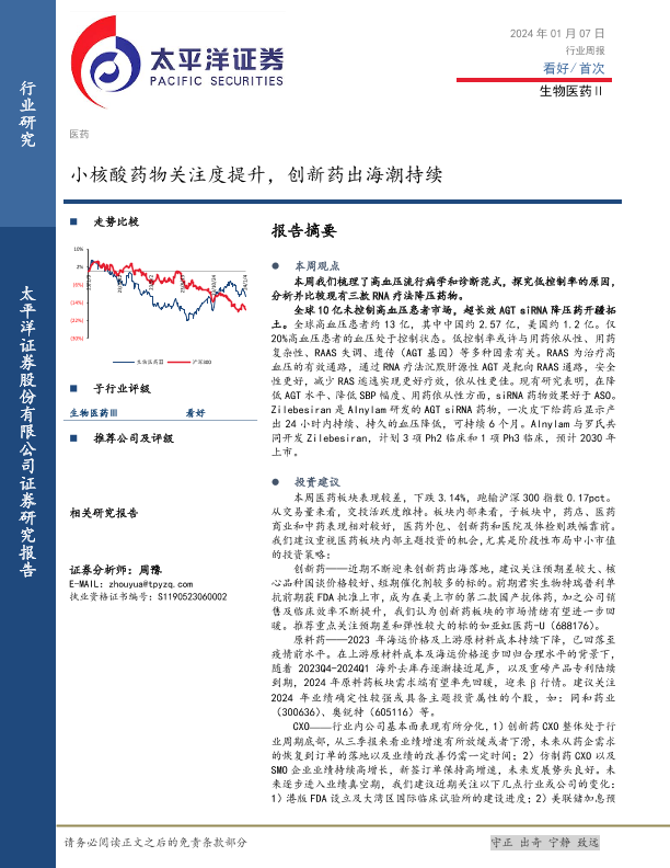 【太平洋证券】【20240107】生物医药Ⅱ行业周报:小核酸药物关注度提升,创新药出海潮持续-23页