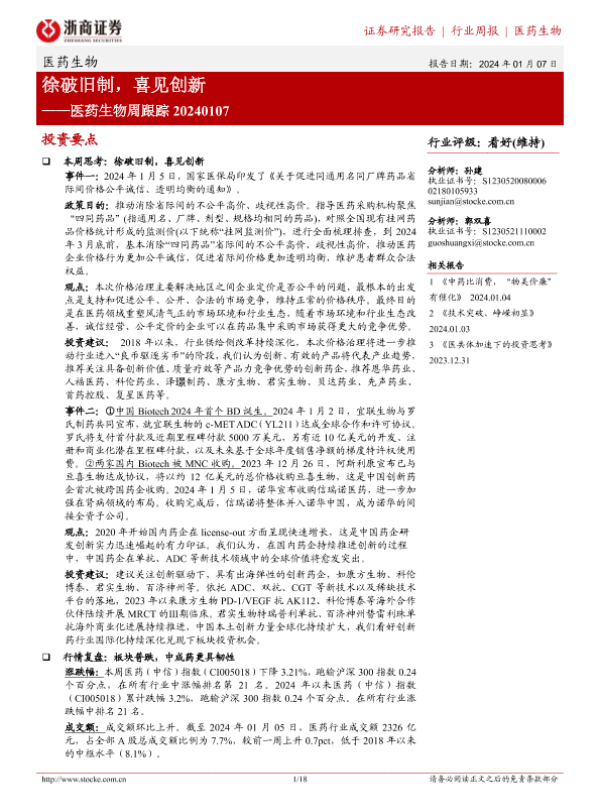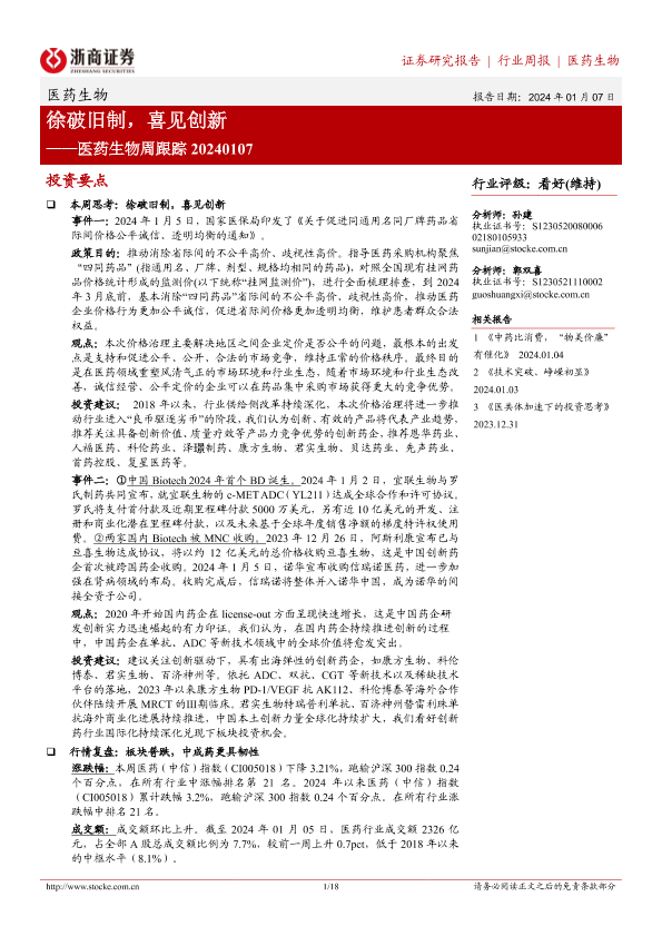 【浙商证券】【20240107】医药生物周跟踪:徐破旧制,喜见创新-18页