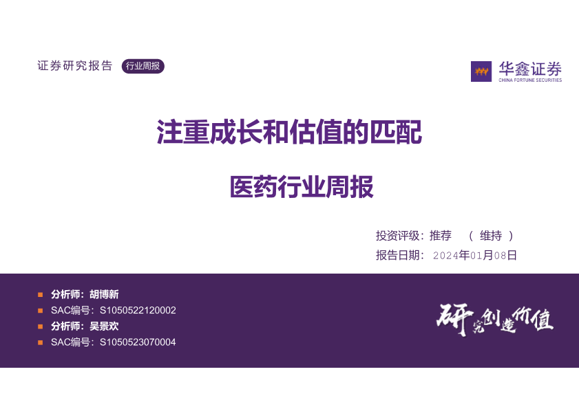 【华鑫证券】【20240108】医药行业周报:注重成长和估值的匹配-33页
