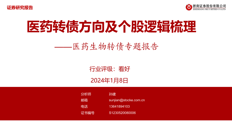 【浙商证券】【20240108】医药生物转债专题报告:医药转债方向及个股逻辑梳理-34页