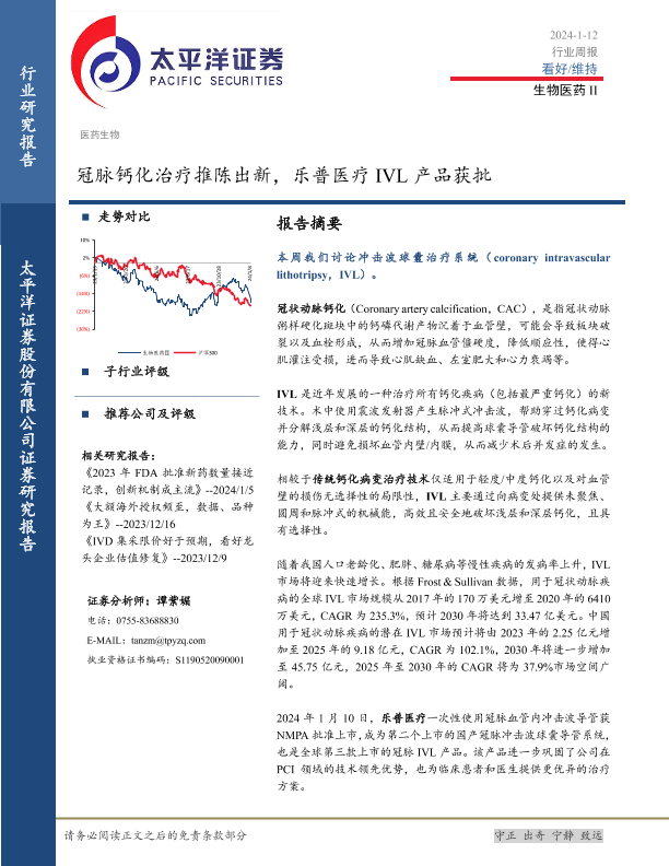 【太平洋证券】【20240112】冠脉钙化治疗推陈出新,乐普医疗IVL产品获批-17页