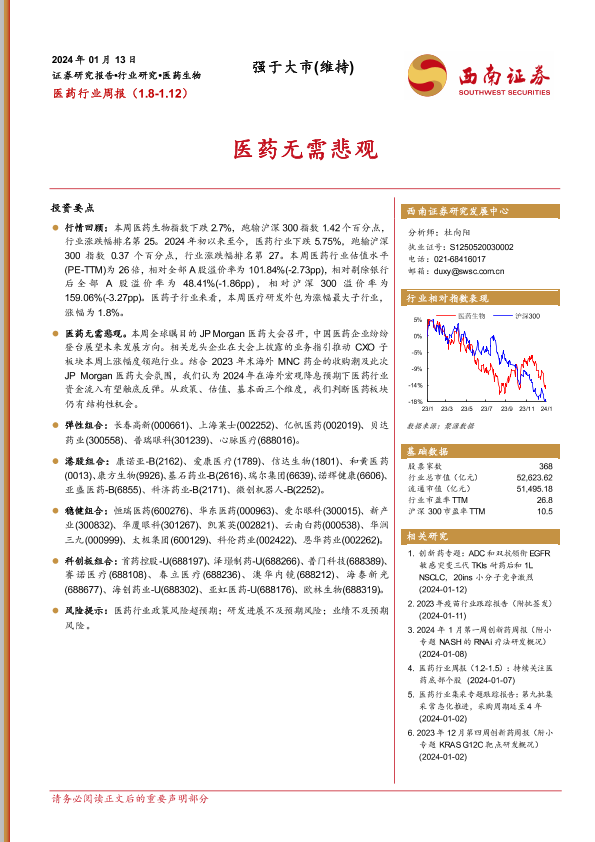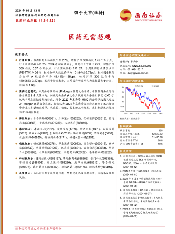 【西南证券】【20240113】医药行业周报:医药无需悲观-34页