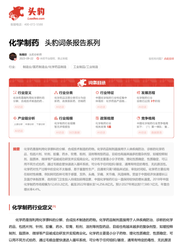 【头豹研究院】【20240115】化学制药 头豹词条报告系列-18页
