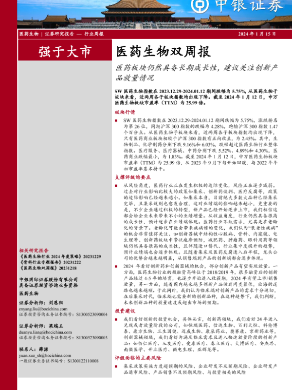【中银证券】【20240115】医药生物双周报:医药板块仍然具备长期成长性,建议关注创新产品放量情况-10页